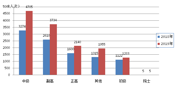 从技术职称结构来看,副高级以上人员为5879人次,占完成人员总数的42.5%,包括院士5人次、正高级2140人次、副高级3734人次;中级职称4705人次,占34.0%;初级职称1283人次,占9.3%;其他1955人次,占14.1%。