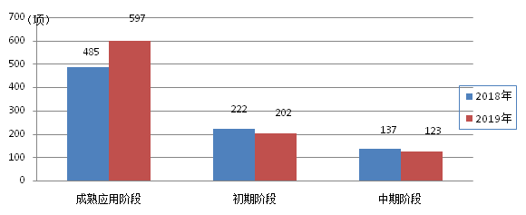 在922项应用技术成果中,597项成果处于成熟应用阶段,占64.8%;202项成果处于初期阶段,占21.9%;123项成果处于中期阶段,占13.3%。