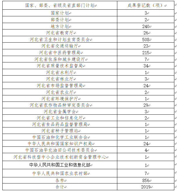 2019年度河北省登记科技成果统计分析报告