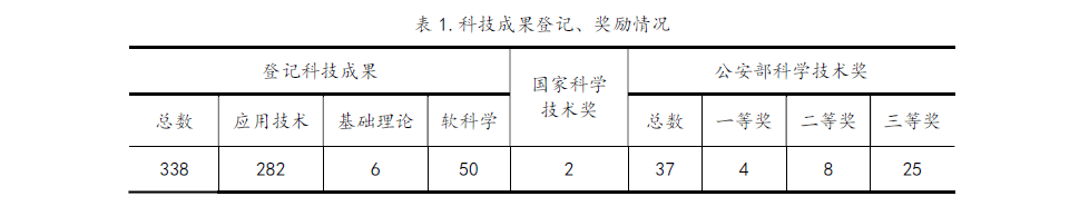 2019年度,我部共完成科技成果登记338项,评出公安部科学技术奖37项(见表1)。