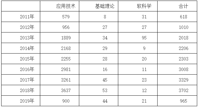 表1    2011-2019年四川省科技成果登记数量   单位:项