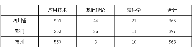 2019年四川省科技成果登记965项,其中部门登记成果397项,市(州)登记成果568项。