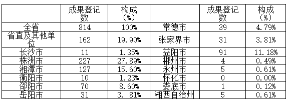 2019年湖南省科技成果统计范围共涉及14个市州有关企业、科研院所、医疗机构以及省直厅属有关单位等。