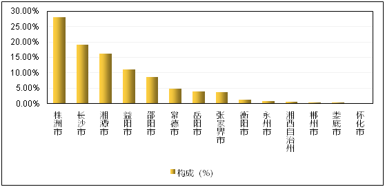 图2  湖南省2019年科技成果登记数量分布状况(按成果完成单位属地)