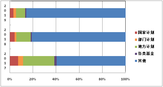 | 各类科技计划 | 国家计划 | 51 | 7.24% | 28 | 4.22% | 25 | 3.07% |