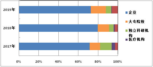 图7  湖南省2017-2019年科技成果完成单位属性对比分析