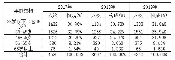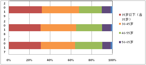 湖南省2017-2019年科技成果完成人员的年龄结构