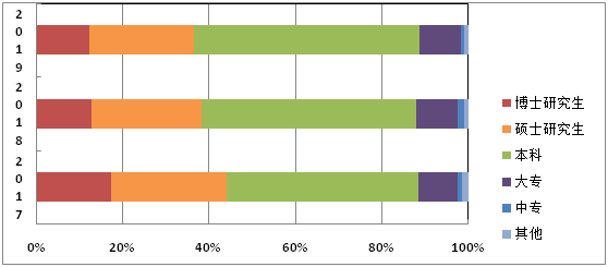 | 学历 | 2017年 | 2018年 | 2019年 | |||