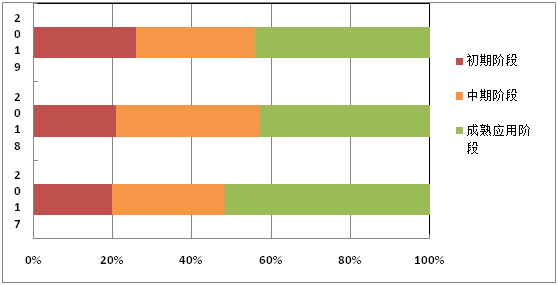 | 成熟应用阶段 | 348 | 51.56% | 278 | 42.84% | 343 | 44.20% |