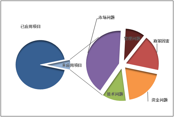 | 未应用项目数 | 资金问题 | 10 | 1.48% | 15 | 2.31% | 10 | 1.29% |