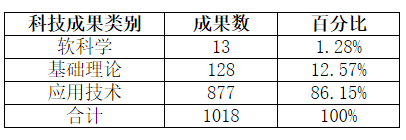 应用技术类成果历来是气象部门科技成果中最主要的类型,2019年应用技术类成果登记877项,占成果登记总量的86.15%。