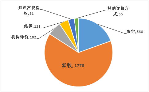 3.成果评价方式以项目验收为主。超过成果登记总数的64.54%。
