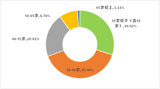 5.青年人员为创新骨干。27028名成果完成人中,35岁以下(含35岁)的9113人次,占总数的30.02%;36~45岁的10621人次,占总数的39.30%,两项合计69.30%。青年人员已成为创新的主要力量。