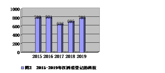 从近五年的情况来看,江西省的科技成果登记总量呈波动状态(见图2)。