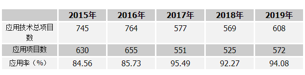 表2 2015-2019年度江西省登记的应用技术成果应用情况