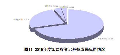 2019年度全省登记的成果中,已应用项目572项,产生了应用效果情况如下:替代落后技术、工艺、装备的项目162项,占应用项目的28.32%;替代进口项目33项,占5.77%;填补国内空白182项,占31.82%;降低成本的项目147项,占25.70%。即应用项目中产生应用效果的占91.61%。