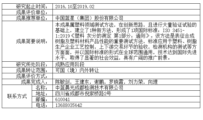 根据中国中化控股有限责任公司科技成果登记管理办法,按照科技成果管理程序,现将中国中化控股有限责任公司登记的成果予以公告。对公告上登记的科技成果内容持有异议者,可与中国中化控股有限责任公司科技成果登记中心联系。其管理有效期(自公告之日起)为期7天。