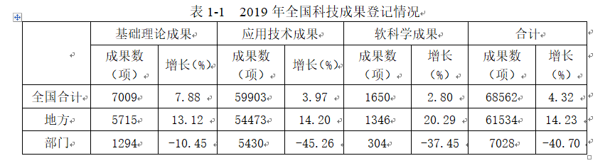 2019年全国科技成果统计年度报告