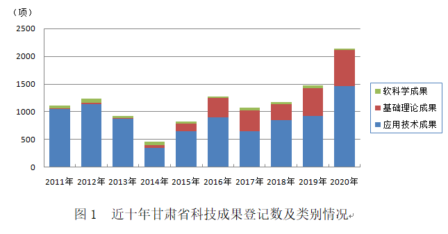 2020年甘肃省共登记科技成果2140项,比上年增加661项,增幅44.7%。所有成果均严格按照《甘肃省科技成果登记办法》(甘科成规〔2017〕1号)登记的原则、范围、条件和要求产生。成果登记后,对无涉密要求的科技成果信息及时予以发布,并围绕新一代信息网络、智能绿色制造、现代农业、现代能源等重点领域,对财政资金支持的计划类项目及有转化意愿的发明专利等市场化前景广阔的重大科技成果借助甘肃科聚网、兰州科技大市场等信息平台进行信息发布,通过信息共享提升科技成果转化成功率。