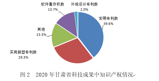 全省登记的科技成果中取得知识产权2886项,其中:发明专利1142项,占39.6%;实用新型846项,占29.3%;其他446项,占15.5%;软件著作权394项,占13.7%;外观设计58项,占2.0%。