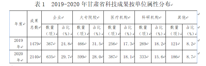 2020年,甘肃省深入实施创新驱动发展战略,认真贯彻落实《国家科技成果转化法》《甘肃省促进科技成果转化条例》等政策法规,持续优化科技成果转移转化环境,多措并举实现科技成果量质齐升、科技成果转化提质增效。