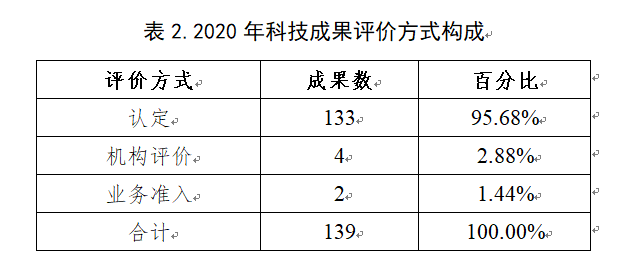 2020年全国气象部门科技成果的评价方式以认定为主,机构评价和业务准入的成果所占比例相对较小,仅占成果总数的4.32%。