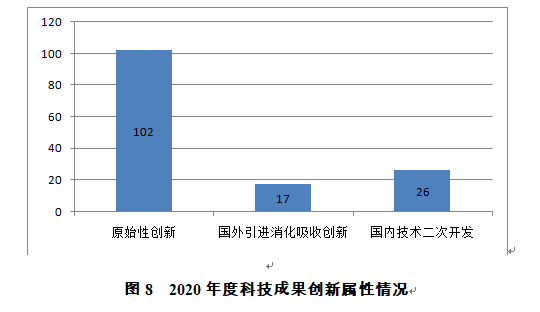 从成果创新属性上来看,原始性创新成果共102项,占可统计数据的70.34%;国外引进消化吸收创新成果为17项,占可统计数据的11.72%;国内技术二次开发的成果为26项,占可统计数据的17.93%。其中原始性创新成果占比较去年增长了八个百分点,体现了市场监管系统科研单位自主科技创新能力的不断提升。