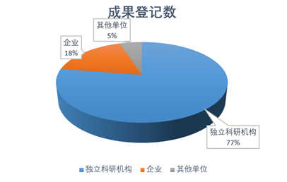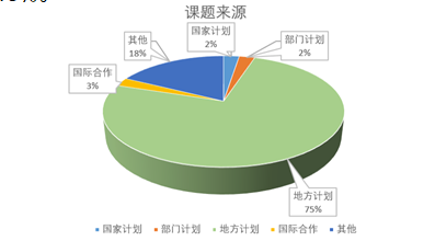 在登记的40项科技成果中,国家计划项目1项,占成果登记总数的2%;部门计划项目1项,占成果登记总数的2%;地方计划30项,占成果登记总数的75%;国际合作计划1项,占成果计划总数的3%;其他7项,占成果登记总