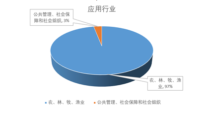 在33项应用技术成果中,应用于农、林、牧、渔业32项,占应用技术成果总数的72.73%;应用于公共管理、社会保障和社会组织的有1项,占应用技术成果总数的9.10%。