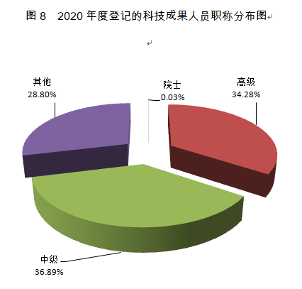 项目完成人中院士6人,占0.03%;高级职称7381人,占34.28%;中级7942人,占36.89%;其他6202人,28.80%。