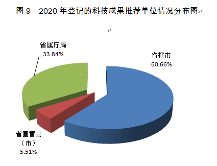 2020年度河南省登记的2524项成果中,省辖市推荐的1531项,占60.66%;省直管县(市)推荐的139项,占5.51%;省属厅局推荐的854项,占33.84%。