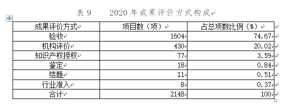 2020年度成果评价方式有:验收、机构评价、知识产权授权、鉴定、结题等。
