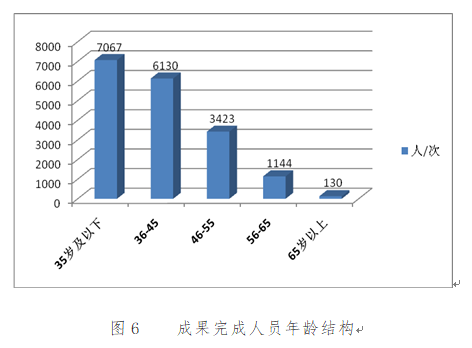 35岁及以下年龄段成果完成人员所占比例最高,达到 39.49 %。