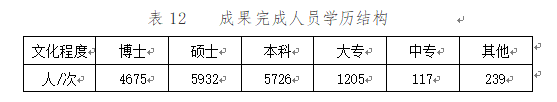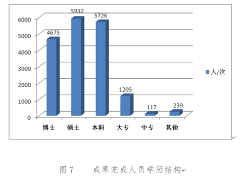 博士、硕士研究生10607人/次,占本年度成果完成人员总数的 59.28%;大学本科生 5726人/次,占本年度成果完成人员总数的 32%。