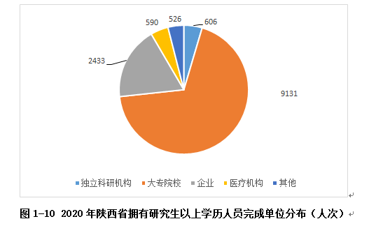 此外,拥有研究生以上学历(包括博士研究生和硕士研究生)的人员主要集中于大专院校和企业(图1-10)。