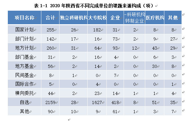 进一步,大专院校完成的成果主要来源于自选项目、国家科技计划和地方计划;企业完成的成果主要来源于自选项目、地方计划以及部门计划;独立科研机构完成的成果主要来源于地方计划、自选项目以及国家计划;医疗机构完成的成果主要来源于自选项目、地方计划和地方基金(表1-1)。