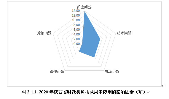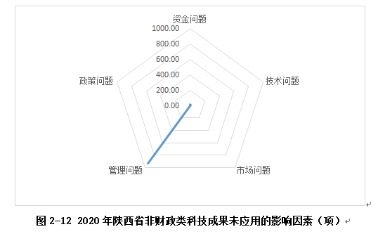 在对科技成果未应用原因分析后发现,财政类科技成果未应用的影响因素以资金问题为主,同时受市场问题、技术问题及管理问题等多种因素影响(图2-11);非财政类科技成果未应用的影响因素以管理问题为主(图2-12)。
