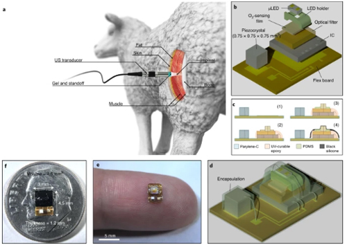 近日,发表在《Nature Biotechnology》上的一项研究中,来自美国加州大学伯克利分校和加州大学旧金山分校的研究人员开发了一种新的微型无线植入设备。它可以实时测量皮肤深层组织中的氧合水平。这种设备比普通瓢虫还要小,由超声波提供能量,它可以对手术或重症监护患者进行深层组织的氧合监测,并对潜在的器官移植失败或功能障碍提供早期预警。