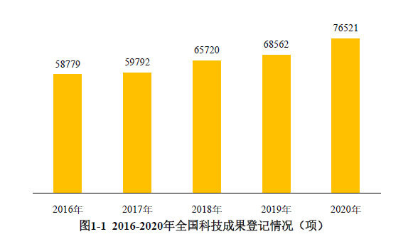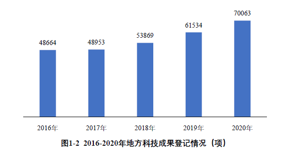 2016-2020年,地方登记的科技成果总量呈逐年增长趋势,2020年相比于2016年增长了43.97%(见图1-2)。