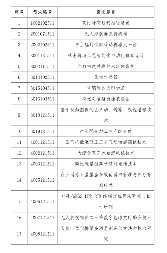 第一批需求共100个,其中,技术难题类需求64个。按技术领域分,新能源与新材料29个,智能制造21个,信息技术与安全6个,人工智能与大数据6个,无人系统2个,动力系统1个,航空航天23个,核生化安全4个,其他领域8个。