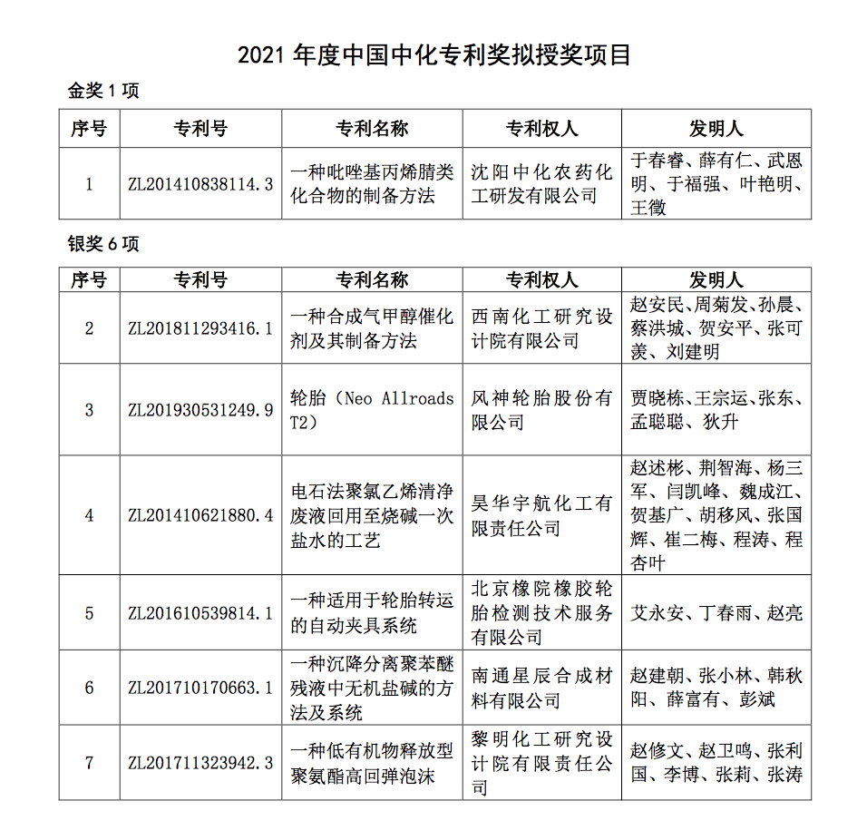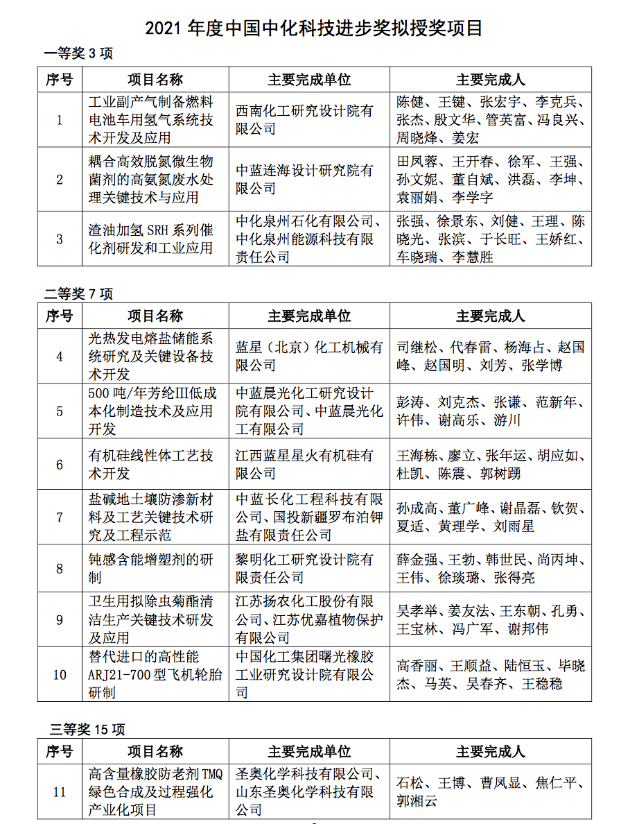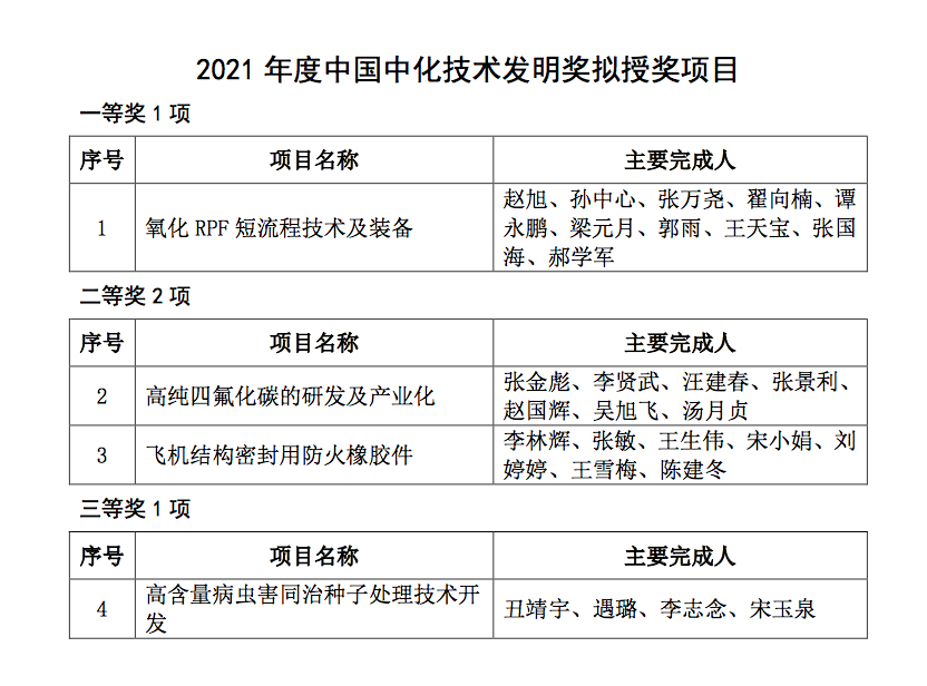 2021年度中国中化科技奖评审结果公示