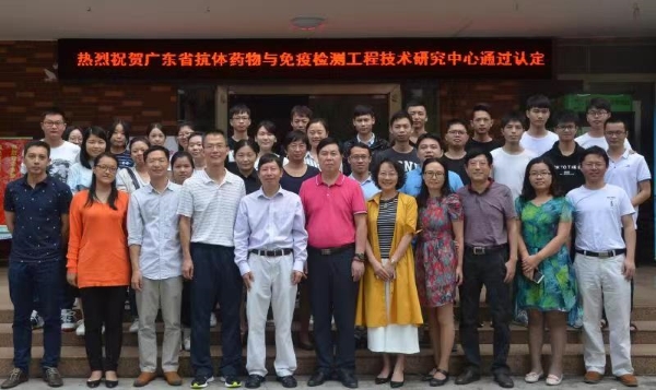 广东省抗体药物与免疫检测工程技术研究中心于2017年9月25日通过广东省科技厅认证,中心在高效率单克隆抗体细胞株荧光快速筛选技术、基于抗体结构分析的抗体设计优化技术、抗体药物动物细胞大规模生产、高灵敏免疫层析检测技术等方面具有优势,独具特色。中心充分发挥高校人才优势和共性平台优势,发挥企业的产业化优势,开发抗体药物、免疫检测相关技术与产品,推进科研与产业化的创新、融合和协同发展,推动抗体药物与免疫检测技术的创新发展。