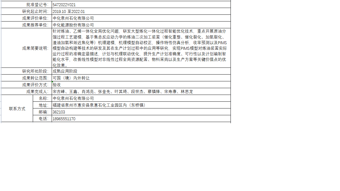 根据中国中化控股有限责任公司科技成果登记管理办法,按照科技成果管理程序,现将中国中化控股有限责任公司登记的成果予以公告。对公告上登记的科技成果内容持有异议者,可与中国中化控股有限责任公司科技成果登记中心联系。其管理有效期(自公告之日起)为期7天。