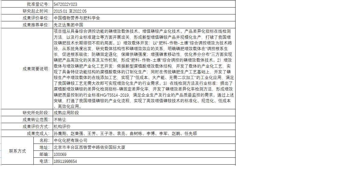 根据中国中化控股有限责任公司科技成果登记管理办法,按照科技成果管理程序,现将中国中化控股有限责任公司登记的成果予以公告。对公告上登记的科技成果内容持有异议者,可与中国中化控股有限责任公司科技成果登记中心联系。其管理有效期(自公告之日起)为期7天。