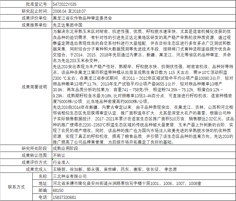高产稳产早熟玉米杂交种先达203的选育与推广