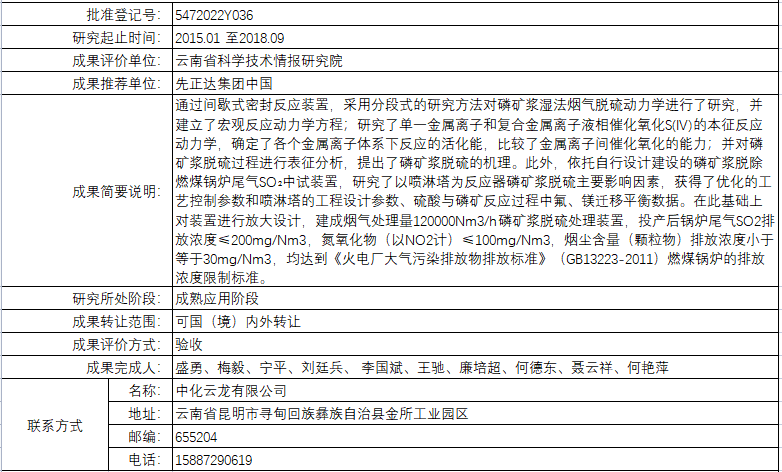 根据中国中化控股有限责任公司科技成果登记管理办法,按照科技成果管理程序,现将中国中化控股有限责任公司登记的成果予以公告。对公告上登记的科技成果内容持有异议者,可与中国中化控股有限责任公司科技成果登记中心联系。其管理有效期(自公告之日起)为期7天。
