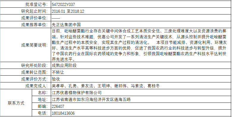 吡唑醚菌酯清洁化生产核心关键技术的研发与产业化