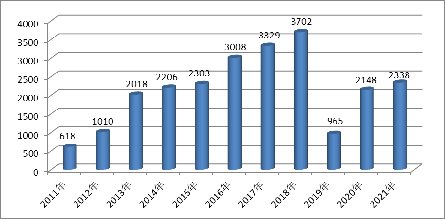 | 2021年 | 1828 | 479 | 31 | 2338 |