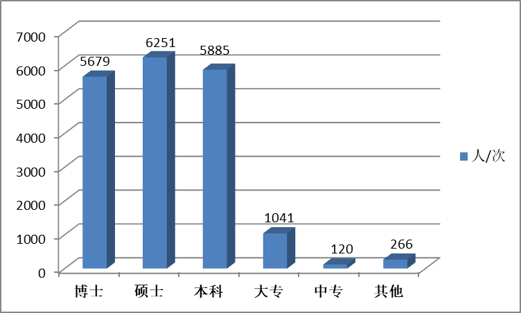博士、硕士研究生11930人/次,占本年度成果完成人员总数的 62.00%;大学本科生 5885人/次,占本年度成果完成人员总数的 30.58%。