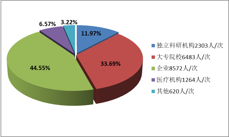 大专院校     6483人/次,占本年度成果完成人员总数的 33.69 %;